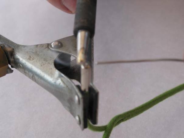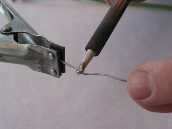 - Solder the wire onto the end of the terminal by letting it glide sligtly